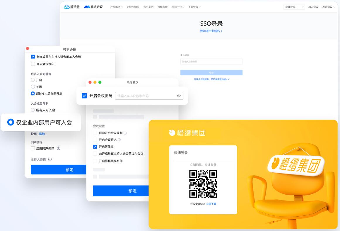 ? ? ? ?1、支持对接企业通讯录,企业微信扫码直接登录、SSO单点登录,仅企业内成员可入会,参会人员更可控。