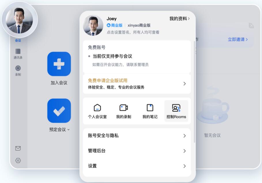 登录您的企业账号,我们一块开启高效会议的新篇章。