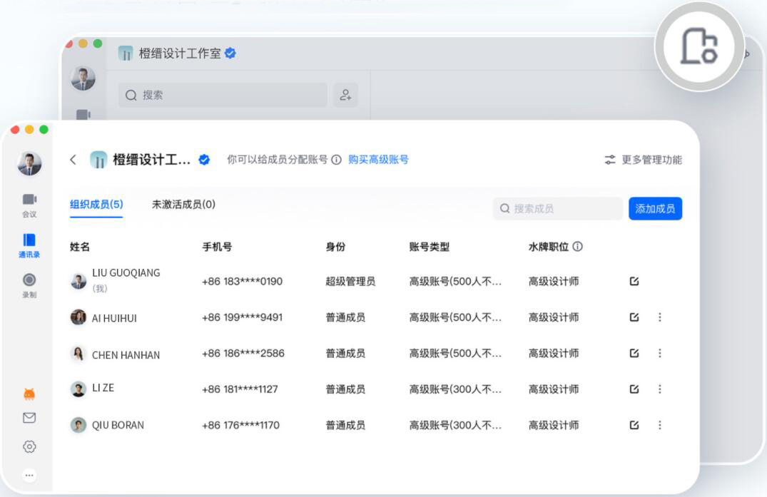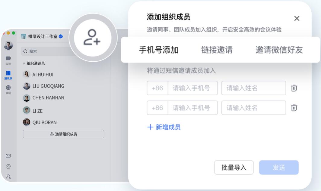 作为企业管理员,您可以在腾讯会议APP或在电脑端访问官网即可通过名单导入、企业通讯录对接等方式邀请成员进入组织,企业管理员将拥有专属的【企业管理】后台,以实现更好的会议资源分配、管理和运维,让组织成员高效协作。