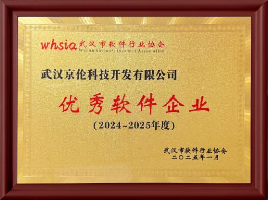 ? ? ? ?武汉京伦科技开发有限公司经过层层选拔,严格评选,被武汉市软件行业协会授予2024-2025年度“优秀软件企业”称号。