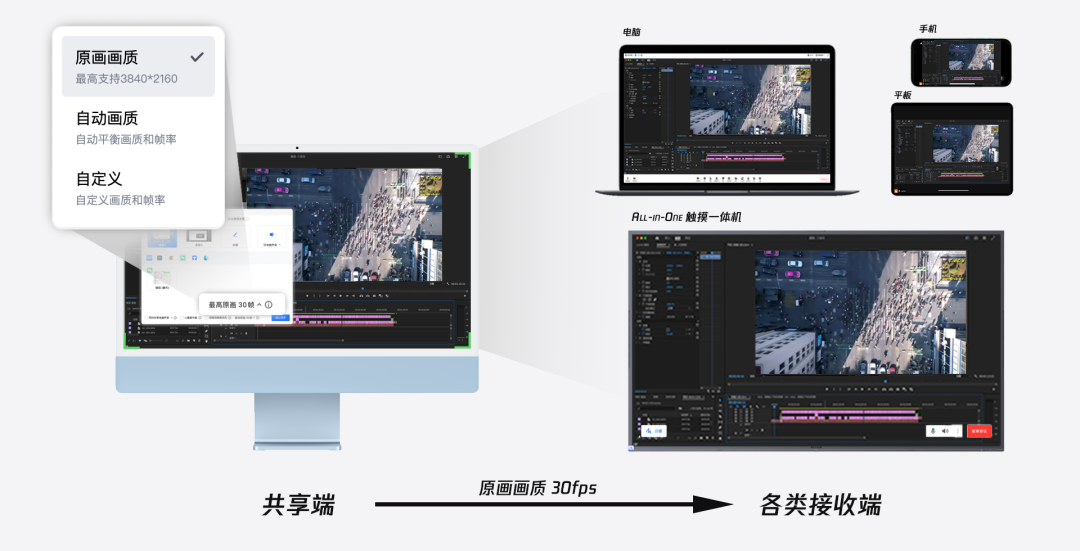 当我们需要共享精密表格、或展现设计图更丰富细节时,商业版的“原画画质+30帧共享”能力,则能够很好地让参会者看得更清晰。